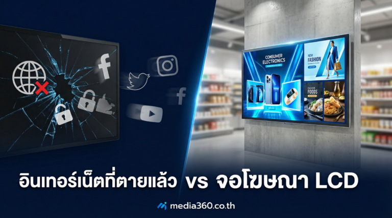 อินเทอร์เน็ตในอุดมคติที่เราเคยรู้จักได้ล่มสลายลงแล้วจากการถูกครอบงำด้วยโฆษณาและอัลกอริทึมของยักษ์ใหญ่ด้านเทคโนโลยี การก้าวเข้ามาของเทคโนโลยี AI และปรากฏการณ์ Zero-Click Search ยิ่งเข้ามาตอกฝาโลงให้กับโมเดลธุรกิจที่พึ่งพายอดคลิกและการเข้าชมเว็บไซต์ ท่ามกลางวิกฤตที่การมองเห็นบนโลกออนไลน์ลดลงอย่างน่าใจหาย ธุรกิจ SME ไทยจำเป็นต้องปรับตัวและมองหาช่องทางใหม่ที่เข้าถึงลูกค้าได้อย่างแท้จริง ซึ่งการใช้สื่อออฟไลน์อย่างจอโฆษณา LCD หรือ Digital Signage กำลังกลายเป็นทางออกที่ทรงพลังและไม่ถูกจำกัดด้วยระบบใดๆ